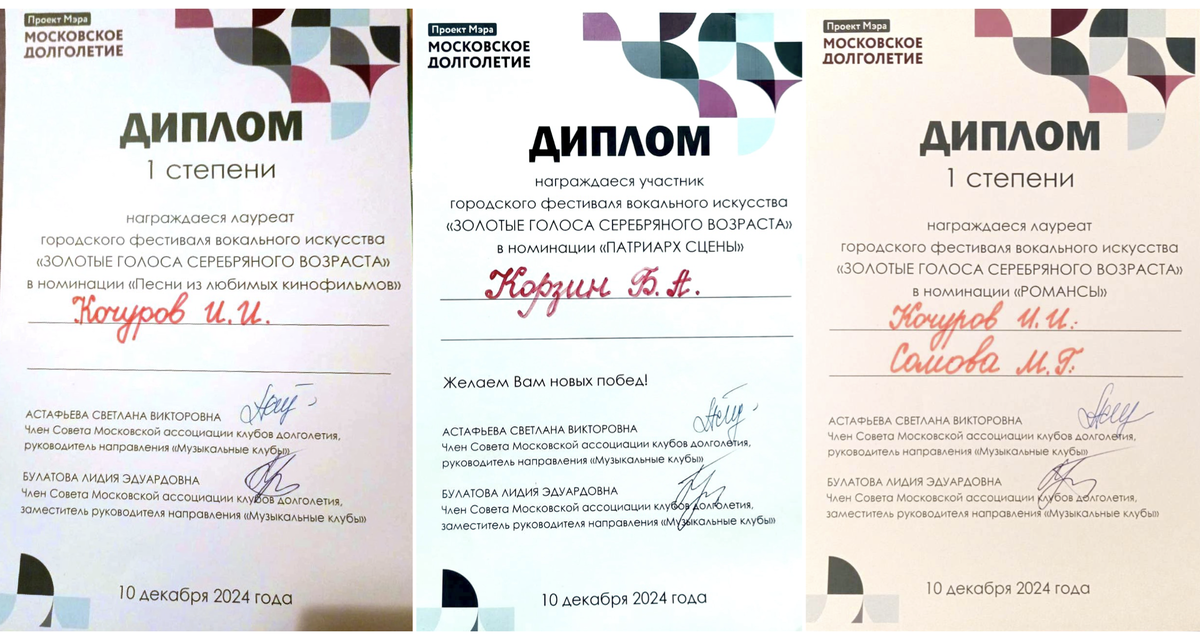 «10 декабря состоялся Конкурс-фестиваль вокального искусства «Золотые голоса серебряного возраста», участниками которого стали солисты нашего хора «Серебряные нотки» проекта «Московское долголетие».