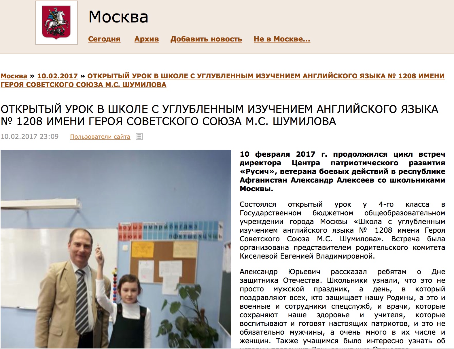 СМИ о нас: ОТКРЫТЫЙ УРОК В ШКОЛЕ С УГЛУБЛЕННЫМ ИЗУЧЕНИЕМ АНГЛИЙСКОГО ЯЗЫКА № 1208 ИМЕНИ ГЕРОЯ СОВЕТСКОГО СОЮЗА М.С. ШУМИЛОВА