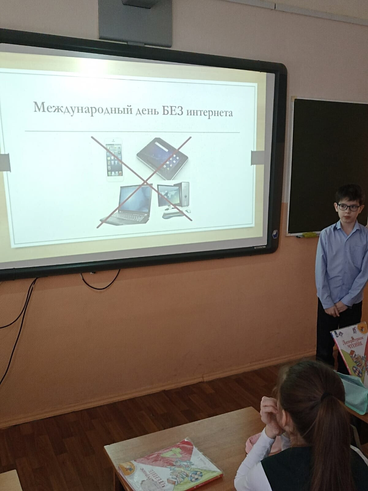 Во всех классах начальной школы прошли классные часы «Мой вечер без Интернета» и классный час-дискуссия «Интернет — друг или враг?». Ребята приняли участие в конкурсе рисунков «День без Интернета».