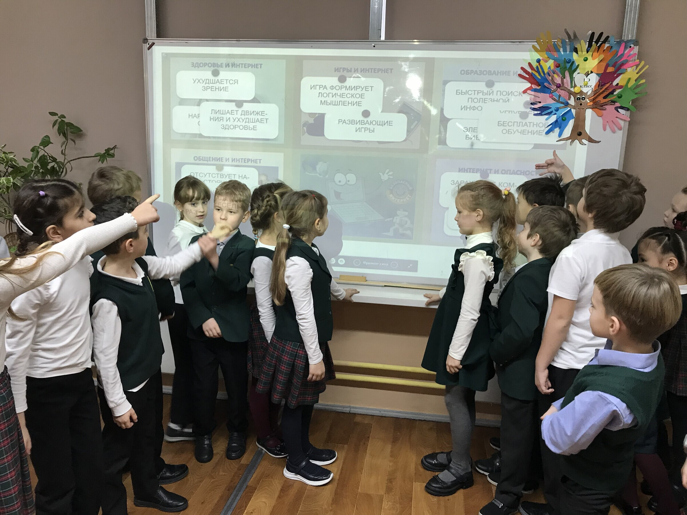 На неделе профилактики интернет-зависимости «OFFLINE», приуроченной к Международному дню без Интернета, который отмечается в последнее воскресенье января, ученики начальной школы знакомились с правилами использования такого полезного ресурса, как интернет, а также с правилами здорового и безопасного образа жизни в информационной среде.