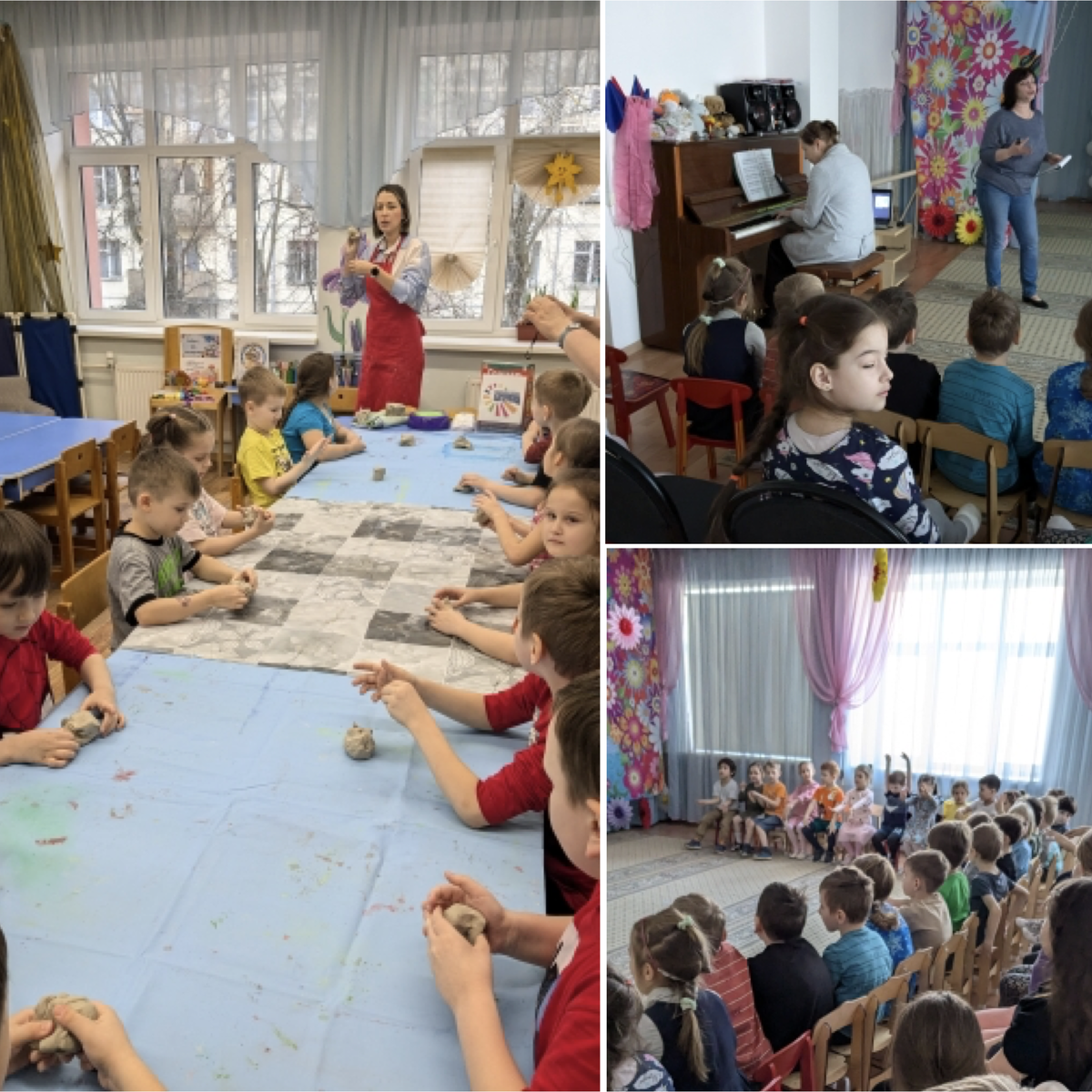 При участии Детской школы искусств «Центр» был проведен мастер-класс, на котором детям 5 корпуса рассказали об истории гончарного производства и показали как нужно работать с глиной.