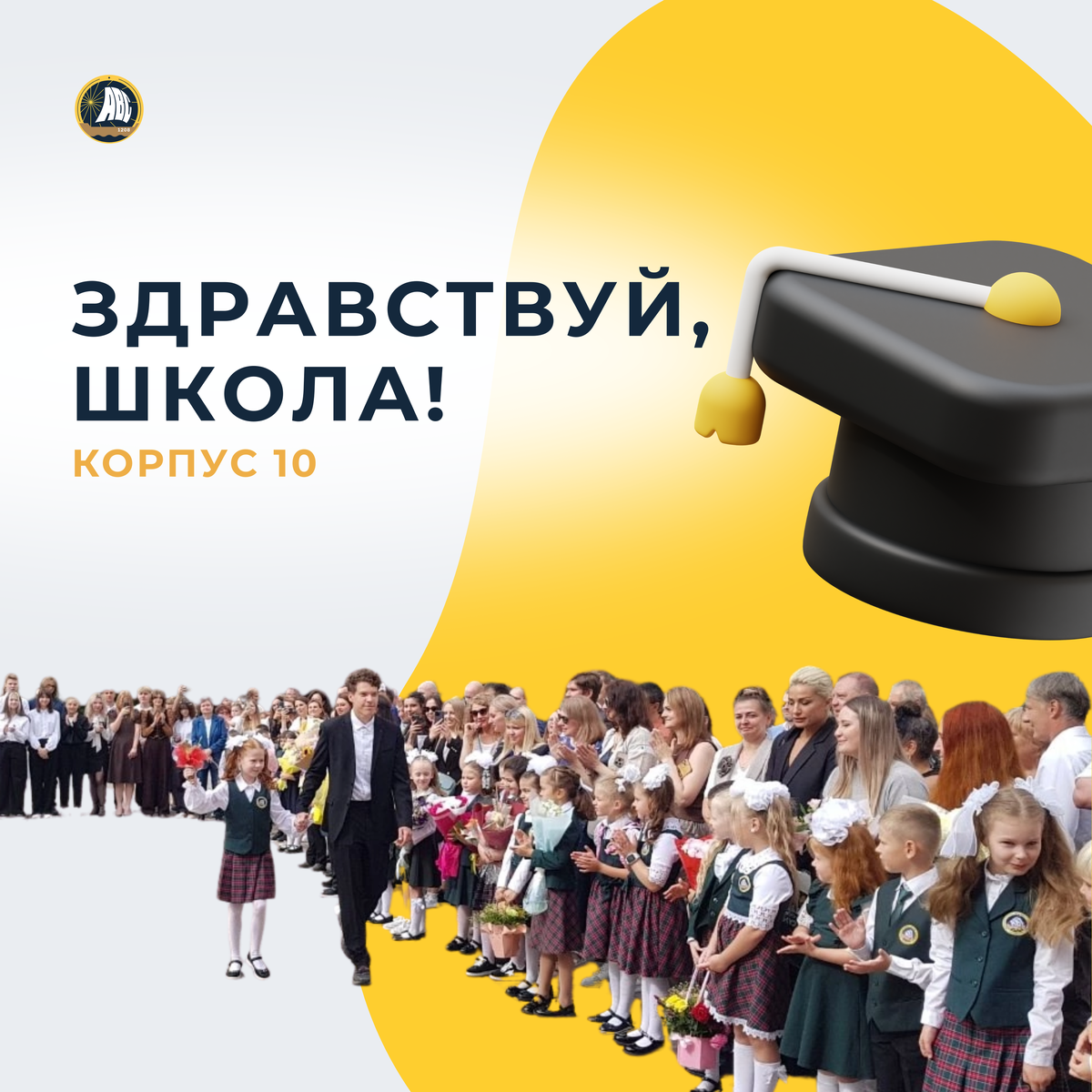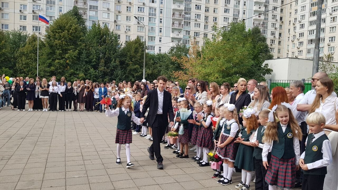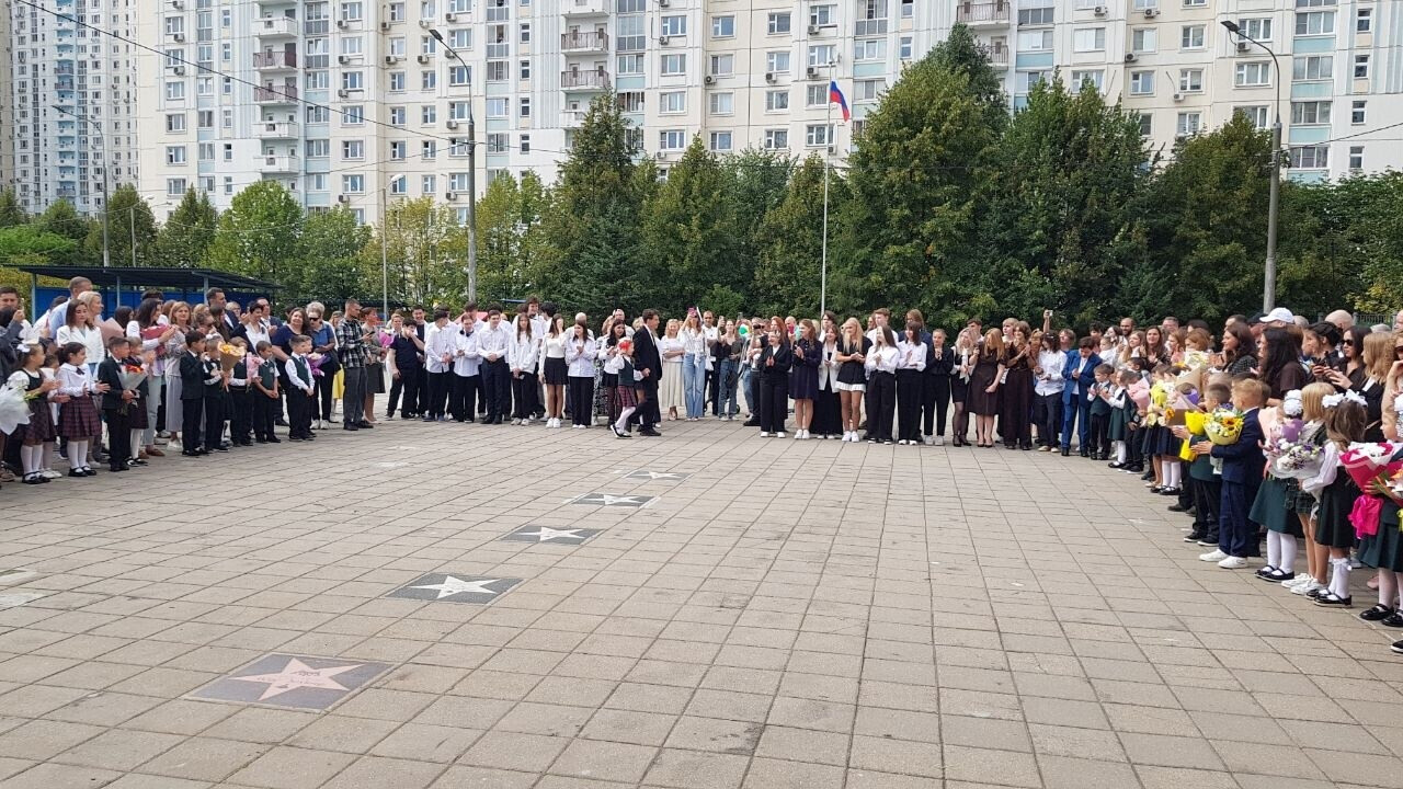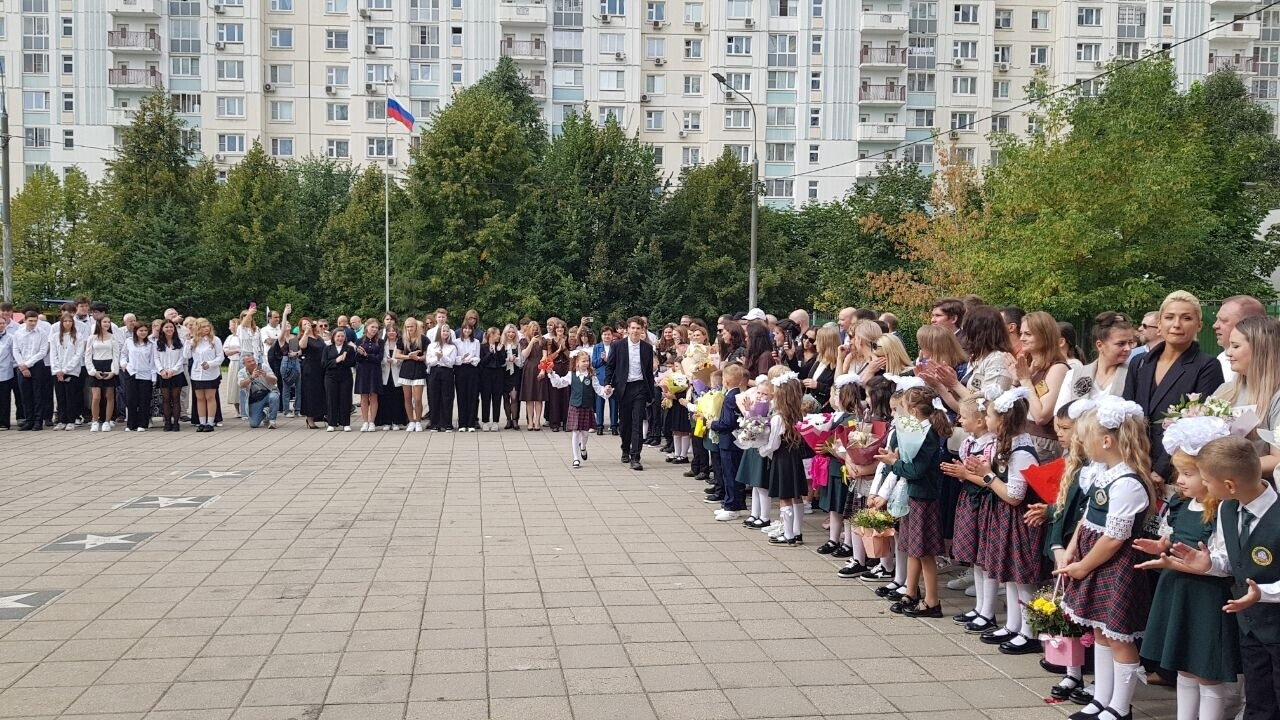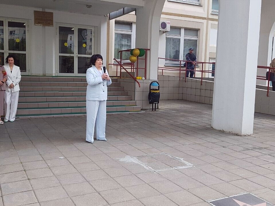 На торжественной линейке учеников 1-х и 11-х классов поздравили директор школы Лариса Юрьевна Малышева и наши юные артисты.