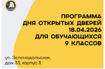 День открытых дверей в школе 1208 для обучающихся 9 классов состоится 18.04.2026 с с 11.00 до 13.00. по адресу ул. Зеленодольская, дом 33, корпус 3.